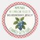 This eye-catching rustic country cottage farmhouse style blueberry jelly canning sticker design is perfect for adorning your homemade jam, jelly, preserves, or marmalade jars! The classic red and white gingham check background pattern adds a timeless charm, and you can customize the sticker with the name of the jam maker for a personalized touch. These stickers are sure to add a unique and professional look to your canning projects!