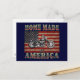 Bobbed motorcycle over an old American flag, with, "Home Made in America," in fancy vintage lettering. T-shirts, gifts.
