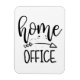 Our Home Office Fixer-upper Office Home Workspace design features black hand-drawn lettering with an arrow and and paint splatter.