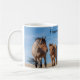 Show your support for the beautiful wild horses of the American West by drinking your coffee and tea from this mug, which features two horses living wild and free in the Pryor Mountains of southern Montana: Dun roan stallion Okomi and his stepson, the 2024 colt Yellowtail.
