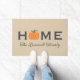 Welcome guests to your home this fall with an inviting personalized doormat. The simple and stylish typography design features "Home" wording with elegant custom script text for your family name and an orange harvest pumpkin accent. Includes a neutral beige, charcoal gray, orange, and green color scheme.