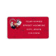 Home Plate Baseball Wedding Labels (02)-A graphic art cluster created in the theme and colours of baseball. The cluster features two baseball gloves (red and blue) with softballs included. Two wooden baseball bats sit behind the gloves and cross on home plate. Home plate reads: Home Sweet Home. A popcorn cookie bouquet sits off to the left with personalised cookies and a heart box/wedding ring inside. A double layer heart is the background for the cluster. One red heart sits inside the red, white and blue striped heart. Text curves around the heart and reads: WE'RE GETTING MARRIED ON HOME PLATE (all caps white print). The background is red with tiny red and blue scattered stars. Four text areas are in place for your name and address info. These text areas are in white print. This design is available in assorted background colours. Save the date postage stamps are available to coordinate. *A portion of this design was created using purchased and CU licensed PSP Scripts by Joannes Digital Designs. Her awesome scripts can be purchased here: www.joannes-digital-designs.com