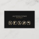 This home repairs business card features a jet black background. Five gold icons related to home repairs appear on the lower half of the card, with your business name and tagline or text appearing in bold on the upper half. Your contact details appear on the back of the card. The small icons create a very impressive professional look.