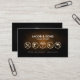 This home repairs skilled trade business card features five gold icons related to home repairs (tools, power drill, paint roller brush, electric plug and water faucet). Perfect for handyman, house repair, home repair, contractor, builder, building, construction, renovation, remodeling themes.