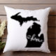 Our custom pillow adorned with Michigan Home State, back is black and white plaid. View our full line of products in our Zazzle store.