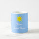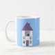 Customisable Home Sweet Home white mug with a cute cartoon illustration of a pretty house with a young couple & their pets looking out of the windows on a sunny day on a blue background with lilac border. A sweet & adorable housewarming gift for a family that has just moved or for a newly wed couple. Also a fun mug for real estate agents! You can move, re-size, or remove any of the design elements. The text, font, background colour & border are customisable. Choose the style, colour and size of your mug. If you need any assistance in customising your product please contact me through my store and I will be more than happy to help.