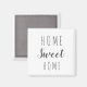 A hand drawn farmhouse magnet featuring home sweet home message.