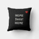 Home sweet home and heart on black Throw Pillow. Elegant black and white Pillows.