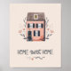 Bring warmth and style to your space with this beautiful "Home Sweet Home" poster. Featuring a lovely illustration of a rustic pink house adorned with delicate pink, coral, and red flowers and navy blue branches, this design exudes cosy charm and elegance.