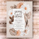 A rustic boho fall floral housewarming party invitation featuring flowers and autumn leaves.