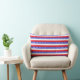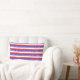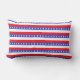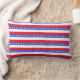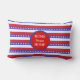 Home sweet home on red and white striped lumbar pillow. Blue stripes have star pattern. Home Sweet Home is only on the front side. Text can be personalised. Bring home a little piece of joy.