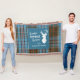 Cute home sweet home Christmas throw blanket you can easily customise by clicking the "Personalise" button, Featuring deer silhouette and clan Anderson tartan in teal, light blue check.