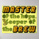 This "Les Miserables" inspired design for beer brewers says, "Master of the hops. Keeper of the brew." The words "master" and brew" are done in beer colours with bubbles. The rest is green, with the "o"s replaced by hops and part of the "K" replaced by a key. A great poster for a homebrewer or a brewmaster to hang on the wall at your brewery.