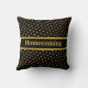 Chic throw pillow with beautiful gold metallic look polka dots on black background. Homecoming can be personalised. Home and family are our true treasure!