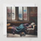 Displaced man sleeping in an abandoned building with his faithful cat homeless man emotional urban life, human condition ai art.