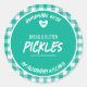 Homemade round custom bread and butter pickle food labels for gift giving any time of the year.