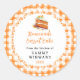 This fun and whimsical sticker features a carrot cake on a white lace doily and orange gingham background. It is perfect for labelling your homemade goods. The text combines handwritten script and serif fonts for a stylish and modern look.