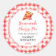 This fun and whimsical sticker features a cherry pie on a white lace doily and red gingham background. It is perfect for labelling your homemade goods. The text combines handwritten script and serif fonts for a stylish and modern look.
