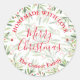 Merry Christmas personalized round stickers featuring modern, elegant winter leaves and berries with your name and greeting in chic lettering. All text, fonts, font colors can be modified, just click the "customize further" link. **ALL STICKER STYLES are already done for you in our store plus MATCHING items in our store.