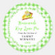 This fun and whimsical sticker features a key lime pie on a white lace doily and green gingham background. It is perfect for labelling your homemade goods. The text combines handwritten script and serif fonts for a stylish and modern look.