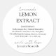 Professional bottle label designed specifically for homemade lemon extract. Features fresh lemon zest ingredients, proper storage instructions, and usage guidelines. High-quality waterproof vinyl perfect for kitchen use. Customisable with maker's name for personal touch or gift giving.