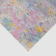 Homemade paper made with recycled paper and other items including paper pulp in pinks, purples, yellows, blues and greens. Unique texture shown in scanned handmade paper image.