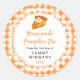 This fun and whimsical sticker features a pumpkin pie on a white lace doily and orange gingham background. It is perfect for labelling your homemade goods. The text combines handwritten script and serif fonts for a stylish and modern look.