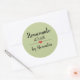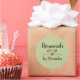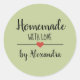 Modern "homemade with love" sticker with a black font on a green background embellished by a cute red heart. Customise text.