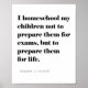 Classic and timeless, this design fits with any style. A bold serif font with elegant detail was carefully selected for the quote and a minimalist, skinny sans was chosen for the author's name. Designed for a modern minimalist look that is both timeless and classic, this design has a style that is versatile enough to look great any home from the most modern to the trendy rustic farmhouse. This inspirational quote was selected with homeschoolers in mind, and makes a great gift for the homeschool mum. The quote reads: "I homeschool my children not to prepare them for exams, but to prepare them for life."