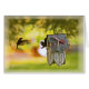 This card features a colourful photo of a house wren about to land on it's birdhouse.