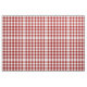 Stylish geometric fabric features a homey red and white gingham pattern. Dark red, white, and light red squares form a bold, buffalo plaid separated into blocks for an updated look to a classic design.