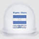 Personalised snow globe features the blue and white Honduran Flag with the word HONDURAS, below, in the colours of the flag. Above, a place for your name. Create a personalised look or, add someone else's name for a gift. Cool stocking stuffer. Fun holiday gift. Great gift for those with Honduran ancestry.