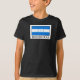 100% cotton so perfect for summer, It is a nicely designed t-shirt, the fabric is soft and the seams finished well, the body of the t shirt has no side seams. I bought a medium size for my two grandsons, aged 9 and 8 it will be slightly big on them but I would rather that than too small