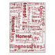 Burnt red and white text (word collage) design. Features slogans "honest open willing", "insanity", "willingness is the key". Copyright © Kate McKenna. All rights reserved.