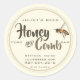 Simple eye-catching Honey and Comb Label with a watercolored inquisitive honeybee near the word Honey.