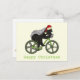 Festive Honey Badger Cycling Funny Badass Animal Cyclist humour festive customisable Christmas postcard. Funny Christmas Santa hat wearing Honey Badger City Bike Cycling Badass Animal humour festive Greetings postcard. Funny animal on bicycle art design created by artist Catherine Sweetman