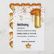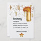 Golden honey themed number balloon first birthday party invitation.
