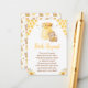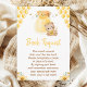 This cute and whimsical watercolor book request enclosure card features an adorable bear leaning against a jar of honey, bees, honeycomb, floral arrangements and balloons. The text combines handwritten script and sans serif fonts for a stylish and modern look. This is perfect for a bee or bear themed baby shower.