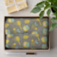 Honey Bee tissue paper to wrap honey jars, and you can pack them in matching gift bags or boxes in the collection, featuring a swarm of honey bees flying around products from the apiary - beehives, wood honey spoons dripping with honey, honey jars with label and price tag.