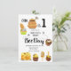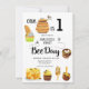 Honey Bee Bee-day Invitations with a honey bee illustration and florals on a honeycomb pattern design. Easily personalise with your own details.