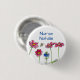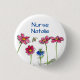 A pretty button featuring bright pink cosmos flowers and a blue nigella with a honey bee drawn in ink with watercolor. Fun button for a nurse name tag!