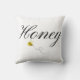 Honey Bee in an elegant script on throw pillow. Flying bee image on scatter cushion.