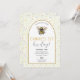These adorable birthday invitations are for a bumble bee themed birthday. They feature a watercolor portrait of a honey bee against a cream background with daisy and lavender flowers.