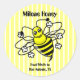 A cute cartoon bee sits in the centre of this fun sticker. The background is white and yellow stripes. This sticker fits perfectly on top of a jar.