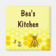 Honey Bee Honeycomb customisable kitchen magnet with art of bees buzzing on a honeycomb with golden honey.