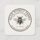 emblem style hand-drawn honeybee with a turquoise heart on honeycomb background