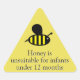 Honey bee hovers over a message to customers and friends: "Honey is unsuitable for infants under 12 months". Honey jar label can be customised for any purpose to use on the top cap or side of glass mason jars, plastic squeeze bottles and other honey containers. Find more small honey jar stickers and labels for honey granulation and nutrition facts in our store.