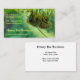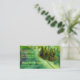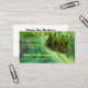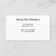 The front of this business card features a photograph of a honey bee collecting pollen and nectar from a catkin. The bee is hanging upside down from the inflorescence. The small yellow flowers run horizontally across the top of the business card. The background is the blurry green of out of focus leaves. The soft yellow text stands out against it. The employee's name, contact information, company name, and website are all clearly legible on the front. The mailing address and further company contact information is on the back. This is a memorable business card for a beekeeper, an apiary, someone who provides pollination services or who sells honey.