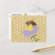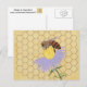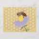 Painting of a honey bee enjoying a flower, on a honeycomb background, is printed on custom postcards.