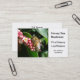 A business card suitable for any bee related business. It features a photograph of a honey bee collecting nectar and pollen from the pink and white flowers of a flowering tree. The photo of the bee was taken close enough that you can see the veins in the wings, the hairs on it's body and the pollen it had already collected on it's leg.
